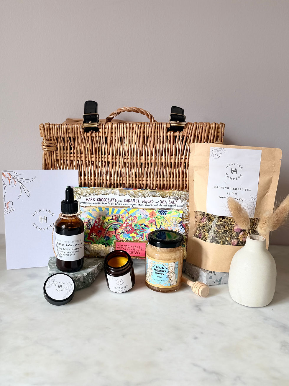 Every detail matters. From our carefully chosen UK herbs and tinctures to the personal notes inside each hamper. Whether it’s a moment of calm in your day or a longer recovery, we’re here to walk alongside you with kindness, knowledge, and natural care.